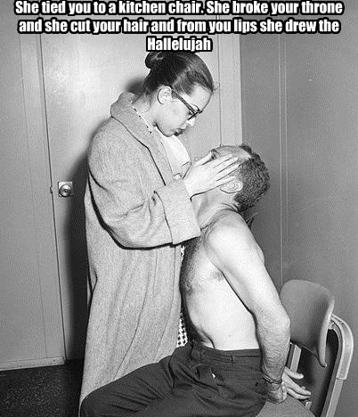 She Tied You To A Kitchen Chair : Tied To A Kitchen Chair By 1194 10 On Deviantart : There's a blaze of light in every word it doesn't matter which you heard the holy or the broken hallelujah i did my best, it.. You saw her bathing on the roof her beauty and the moonlight overthrew you she tied you to a kitchen chair she broke your throne, she cut your hair and from your lips she drew the hallelujah hallelujah, hallelujah hallelujah, hallelujah maybe i've been here before i know this room, i've walked this floor i used to live alone before i knew you Can someone explain the meaning to me, please? She broke your throne and she cut your hair. G em baby i've been here before. The baffled king composing hallelujah hallelujah, hallelujah hallelujah, hallelujah well, your faith was strong but you needed proof you saw her bathing on the roof her beauty and the moonlight overthrew ya and she tied you to the kitchen chair she broke your throne and cut your hair and from your lips she drew, ?hallelujah?